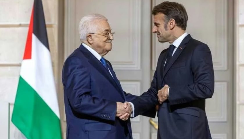 وجاء الإعلان خلال مؤتمر صحفي مشترك لماكرون مع عباس، بعد لقاء ثنائي عقد الثلاثاء، في قصر الإليزيه بباريس.