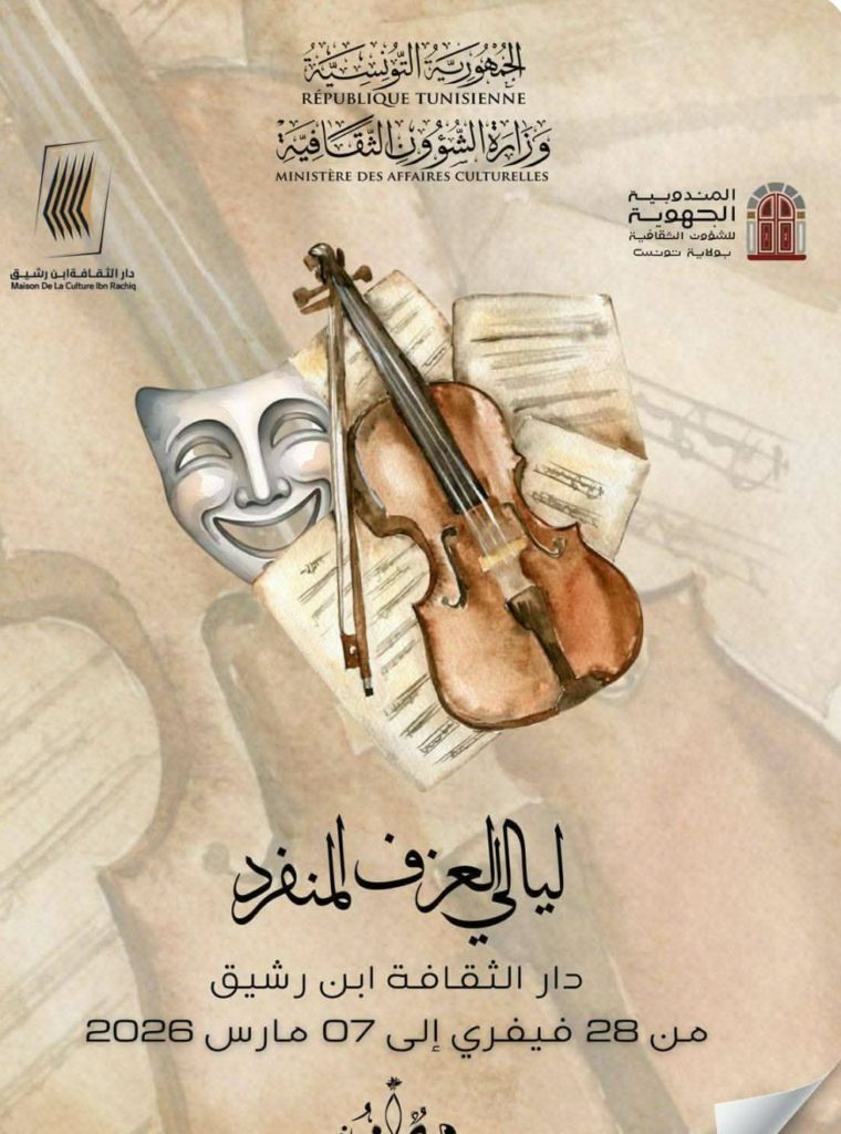 تحتضن دار الثقافة ابن رشيق بتونس تظاهرة موسيقية بعنوان “ليالي العزف المنفرد”، انطلقت يوم 28 فيفري وتتتواصل إلى غاية يوم 7 مارس 2026 وهي سلسلة من العروض الفنية التي تراهن على إبراز الطاقات الموسيقية خاصة الشابة ودعم التجارب الإبداعية الصاعدة في الساحة الثقافية التونسية.